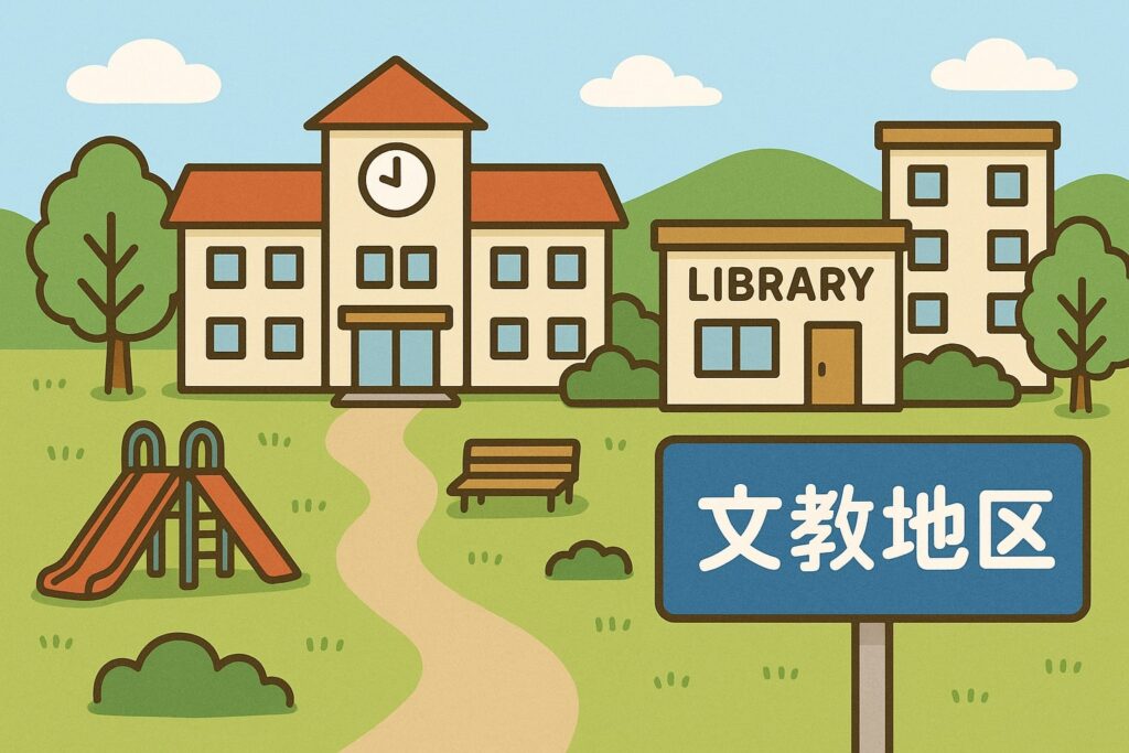 文教地区とは、学校や図書館、美術館などの教育・文化施設の周辺に設けられ、子どもの成長に悪影響を与える可能性のある業種の建設を制限する地域のことです。たとえば、パチンコ店や深夜営業の飲食店、風俗店などは原則として建てられません。これは市町村が条例に基づいて指定する制度で、詳しい規制内容は自治体ごとに異なるため、確認が必要な場合は市区町村役所に相談するのが一般的です。